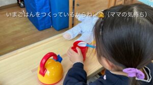 プレ教室リトルエンジェル子どもクラスでは、ただいま『おままごと』に夢中です‼︎