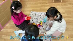 「ピクニックしようよー。いただきまーす」
