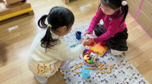 一緒の空間で色々な場面が見られ、その可愛さに思わず笑ってしました。子どもたちの発想にいつも心が温かくなります。明日はどんな場面が見られるかな♪