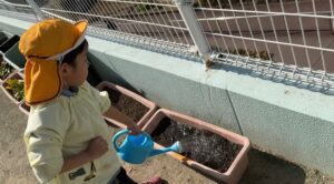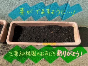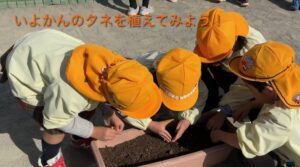 年長さんは食べた いよかんに入っていた種を植えてみましたよ。