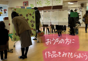 作った作品をおうちの方に見てもらうことが嬉しく、「これが私のだよ!見てみて!」話している様子が見られました。