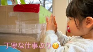 お部屋から段ボールを切る音が聞こえています。