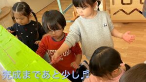 『こーんな形にして』とジェスチャー付きで、先生大工さんに可愛く教えてくれます。