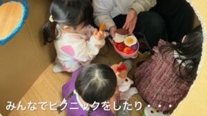 おもちゃで遊んだり、お茶を飲んだり・・・。
