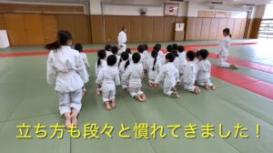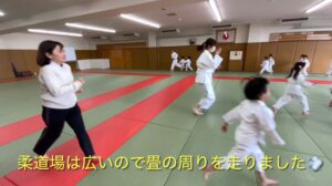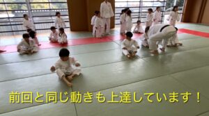 準備体操では、畳の周りを走り、柔道場で走れたことがとても楽しかった様子です。前回同様、動物になりきって身体を動かしたり、新たな動きをしたりしましたが、柔道に慣れてきている様子が見られ、身体の使い方が上達していました!