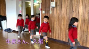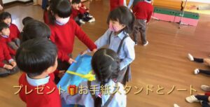 これまで年中さんが相談しながら内容を考え、年少さんと一緒にプレゼントを作ったり、歌や言葉の練習をしたりと、みんなで心を込めて準備をしました。