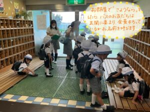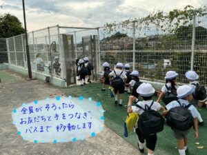 その後、お友だちと手を繋いでバスまで移動します。