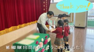 「Hello!」「Let’s enjoy」楽しくユーモアいっぱいの先生と一緒に1年間英語を楽しんできた子どもたち。今年度最後の英語は3学年揃ってEnglish♪