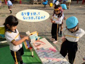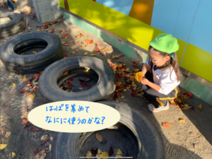 発想力が豊かですね!秋ならではの落ち葉を使った遊びを楽しんでいました✨
