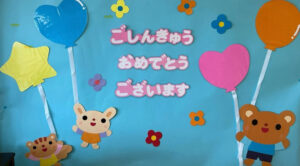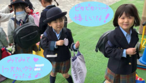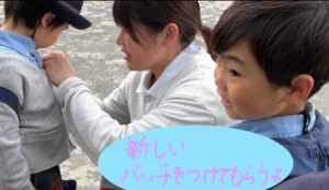 新しいことが始まる4月はワクワクしますね!進級のピカピカバッチの名札をつけてもらい、とっても嬉しそうな子どもたち。