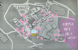 八王子キャンパスの桜マップになりますので、ぜひ参考に遊びに来てください♪
