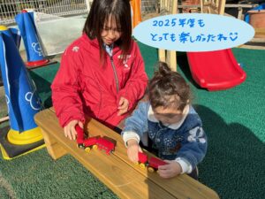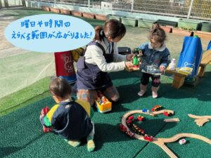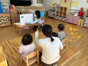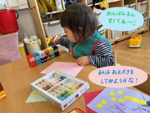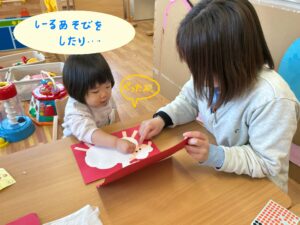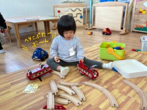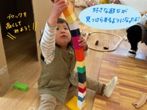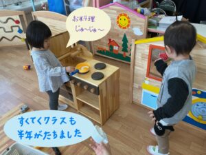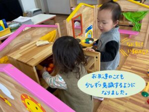 お友達に興味が湧き、お友達の遊びを真似してみたりと半年間で安心して好きな遊びを楽しむ子も見られるようになりました。